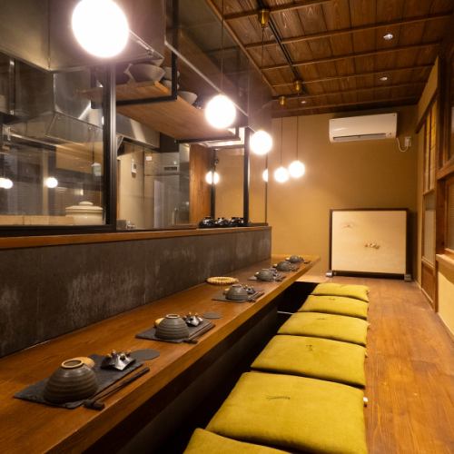 穏やかな和の空間で、カウンターには7席が用意されています♪目の前で繰り広げられる料理の技を楽しみながら、リラックスした時間を過ごせます。お待ちしております。