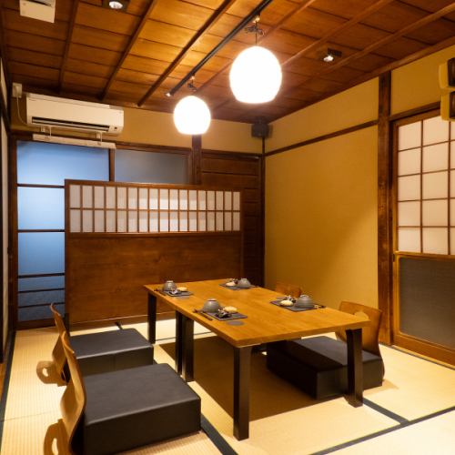 落ち着いた環境が魅力の個室で、6名様までご利用いただけます♪友人や家族との楽しい時間を、静かな和室でお過ごしください。特別な集まりやお祝いにも最適です。
